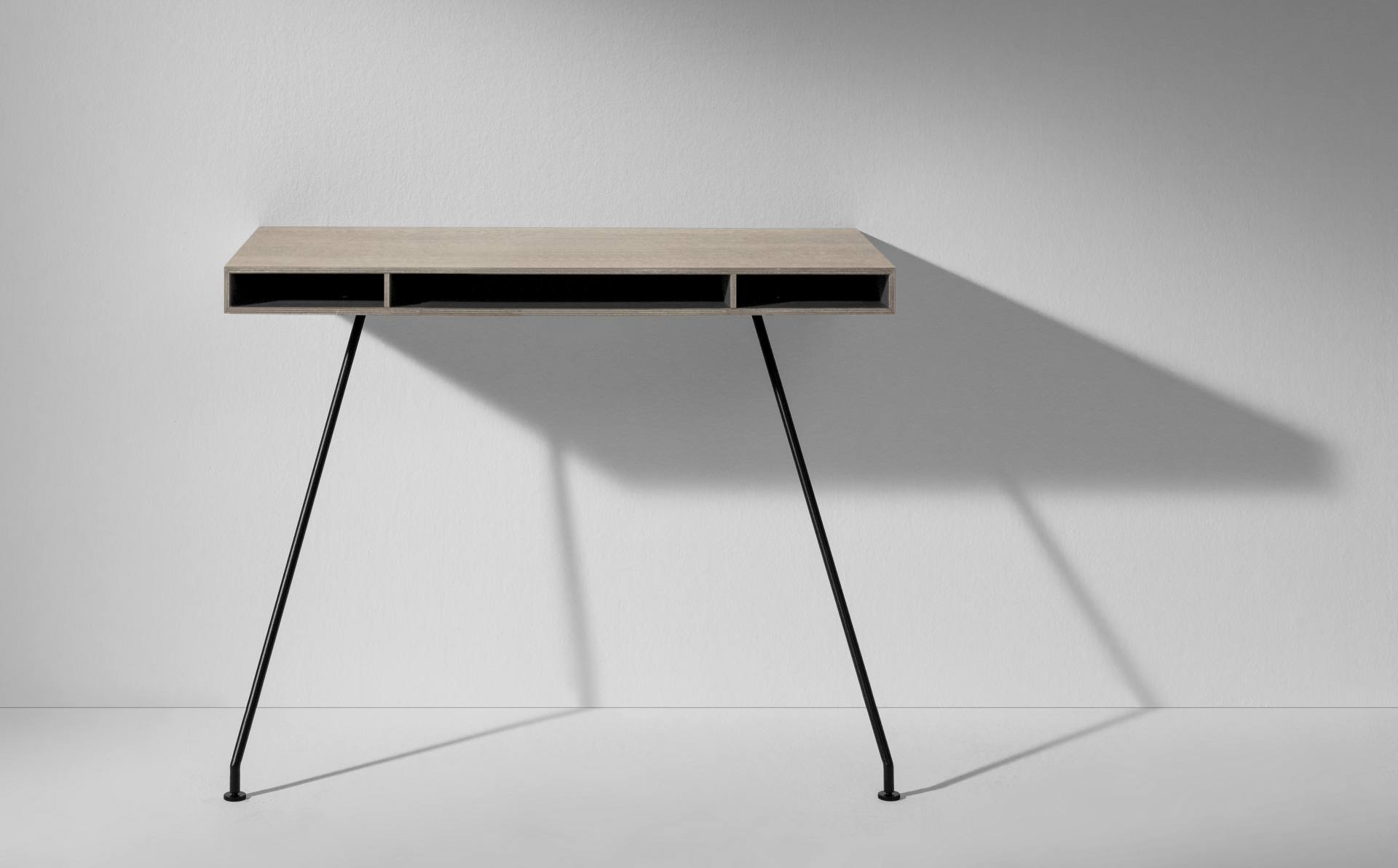 Ein Sekretär, der sich durch sein minimalistisches Design zurückhaltend in unterschiedliche Wohnräume integrieren lässt.